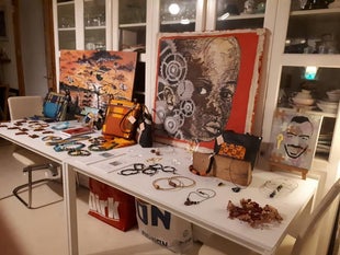 In 2019 waren we veel tweede zondagen van de maand te gast bij Galerie Moon, Bickersgracht nr. 54 huis te Amsterdam. Een middag vol met extra's, waaronder een portretartiest, diverse kunstenaars, hapjes, drankjes en ook vaak muziek. De foto's tonen onze laatste verkoopexpositie op 8 december 2019.
