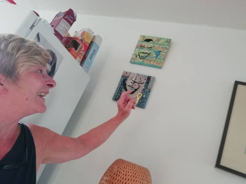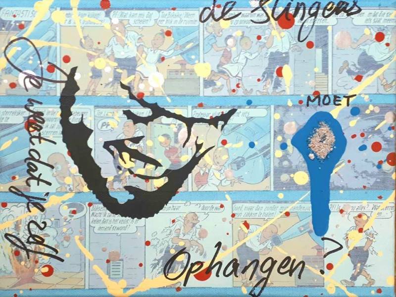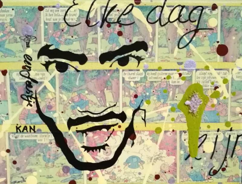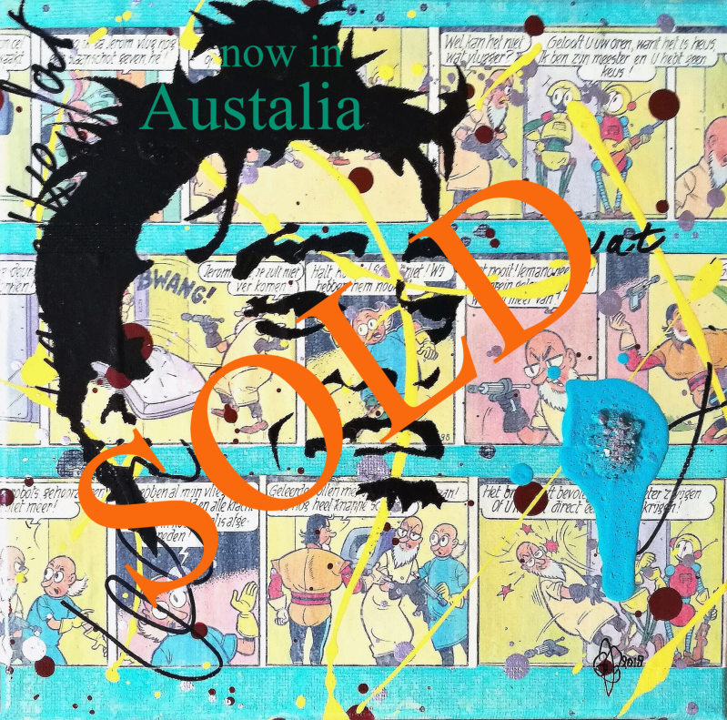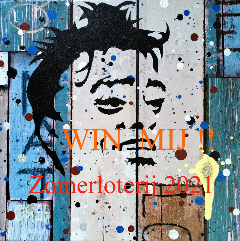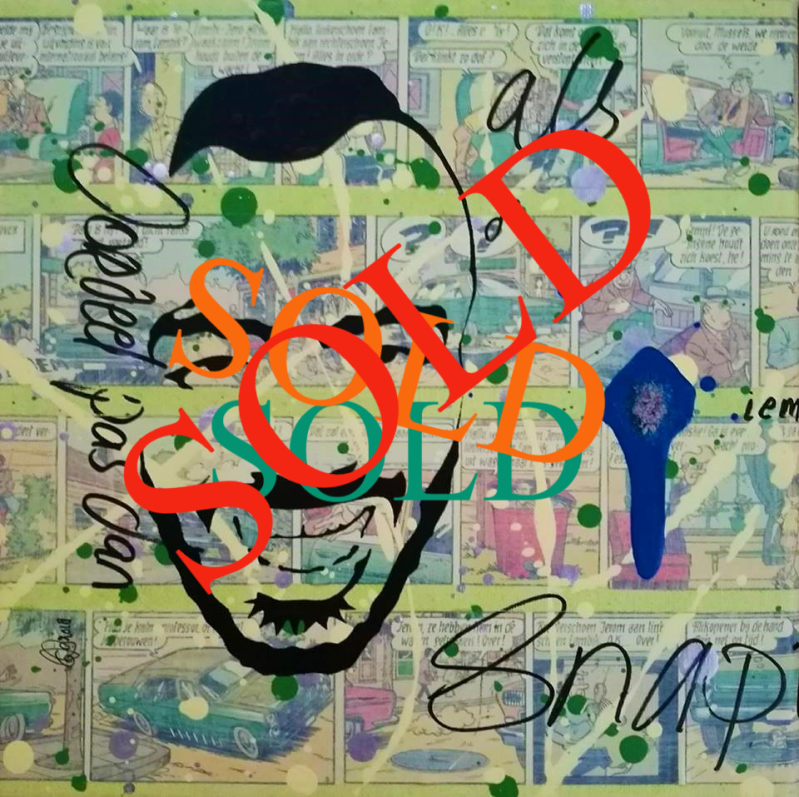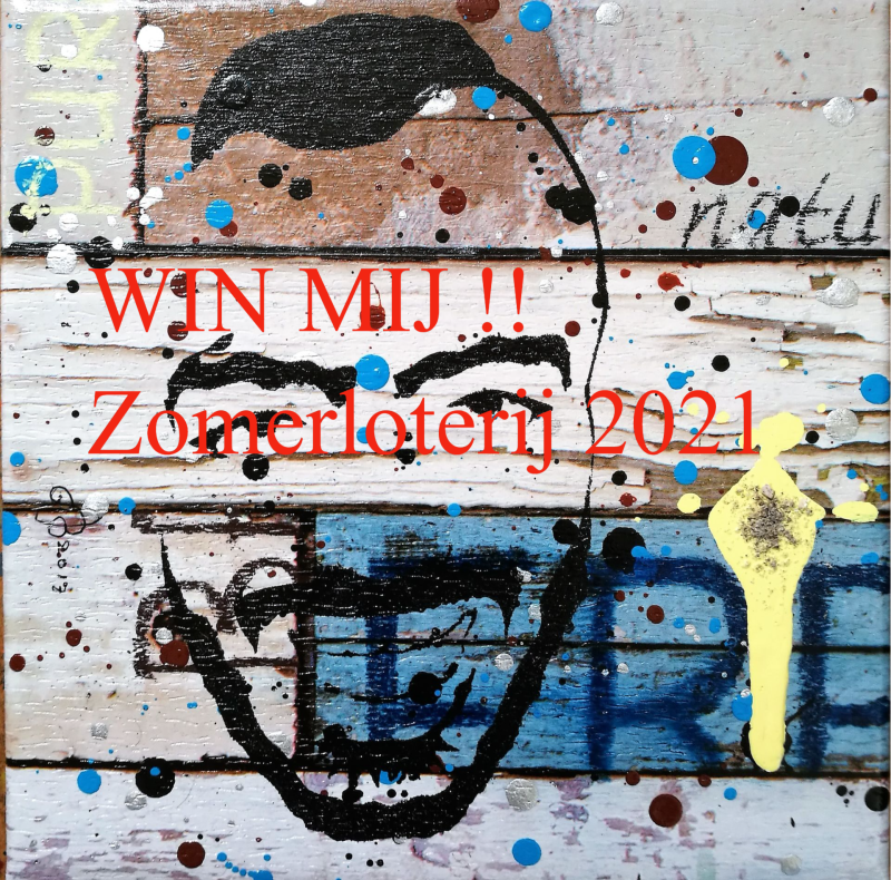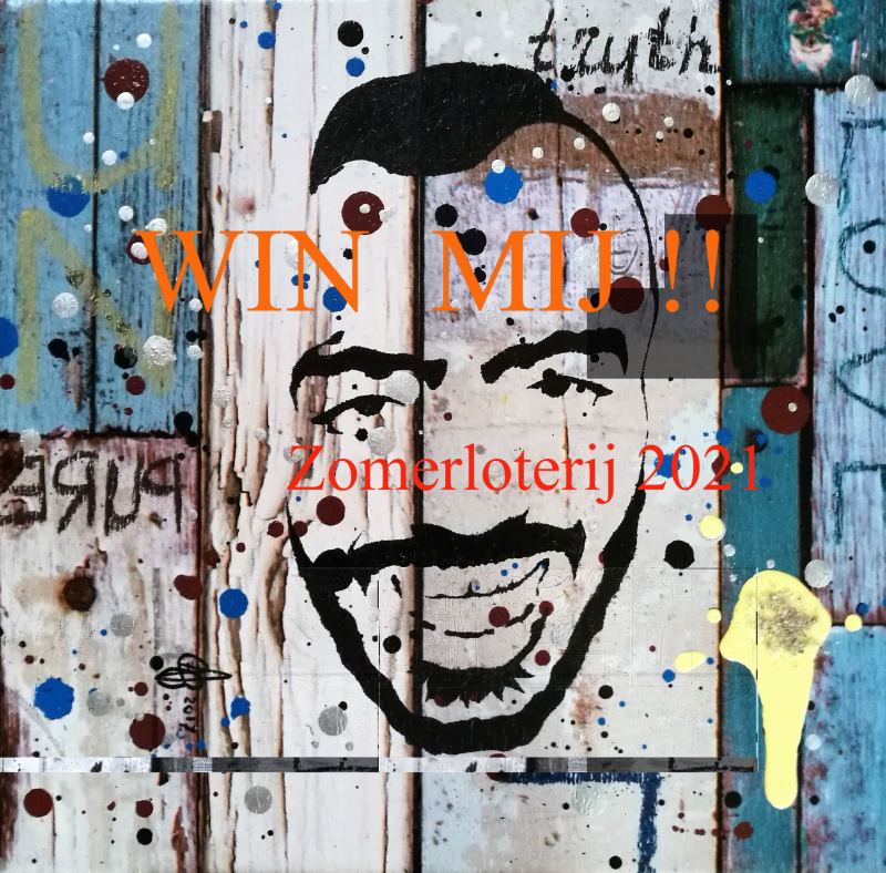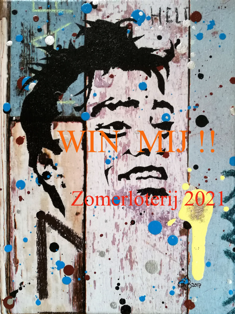 Adjustable Cinis Novum portretten, elk met een klein beetje van Sanjay's as en een 'Sanjay-eigen-spreuk'. Dit jaar met drie Suske en Wiske albums in de achtergrond verwerkt, refererend naar a. zijn studie Lucht- en Ruimtevaarttechniek, b. kamperen en EHBO-vrijwilligerswerk en c. Sanjay's liefde voor pretparken en zomerfestivals. Verkrijgbaar in de maten 20x20 cm, 18x24 cm, 25x25 cm en 24x30 cm a € 100 p/st