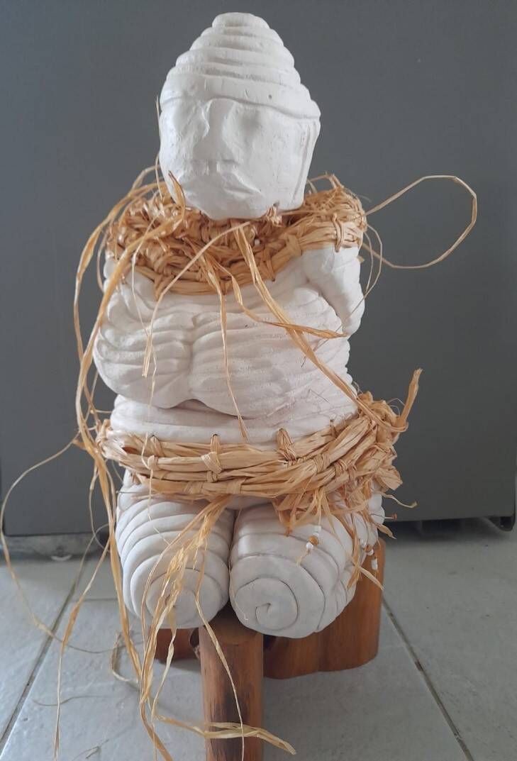 Oermoeder, keramiek, kralen & stro, met interne sokkel, 20 x 20 x 37 cm, € 495