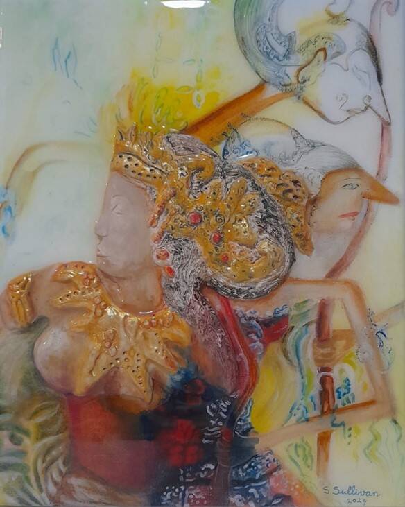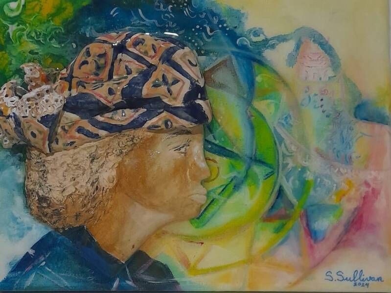 I am the flower of my ancestors, acryl, keramiek en epoxy op doek, 3 D werken, 24 x 30 cm, € 275